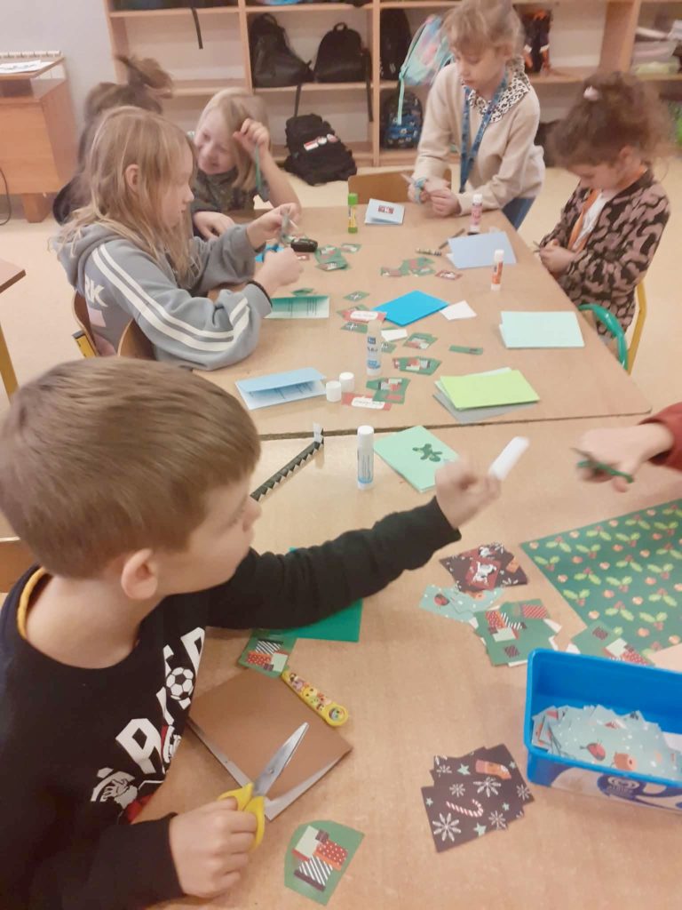 Dzieci ze świetlicy wraz z wychowawcami przygotowały dziś piękne, własnoręczne kartki świąteczne 🎄✨. Już wkrótce zostaną one rozdane naszym sąsiadom jako miły, świąteczny gest 💌🤗.