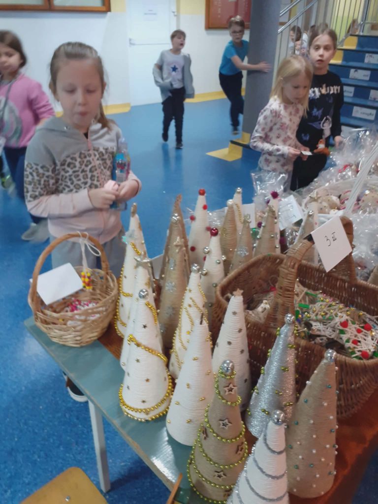 W dniu 17 grudnia w naszej szkole odbył się kiermasz bożonarodzeniowy. Uczniowie oraz nauczyciele mogli zakupić dekoracje świąteczne wykonane przez wychowawców świetlicy.